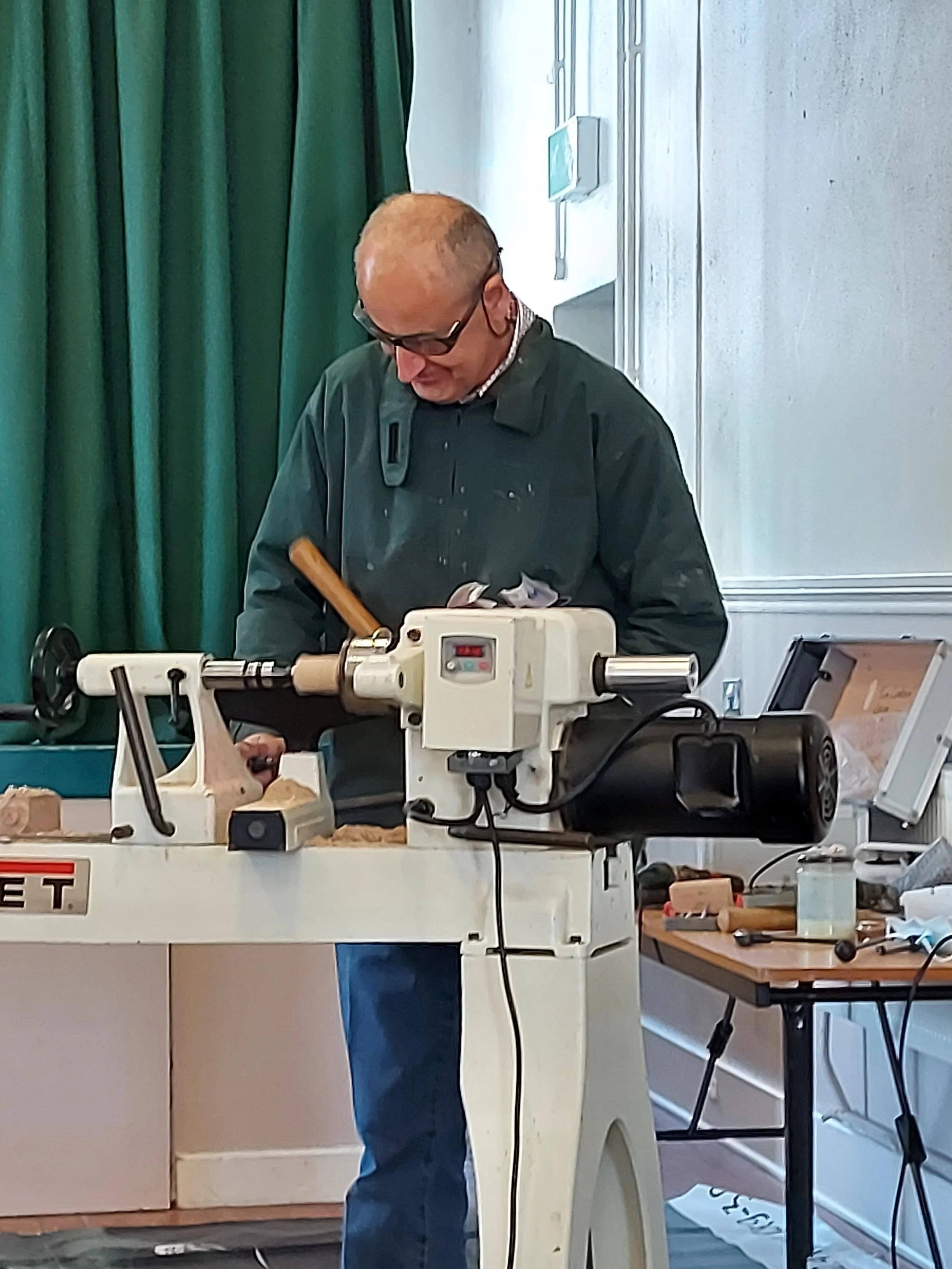 Graham Griffin demonstrated how to go about making a matching pair of candlesticks, always a challenge!